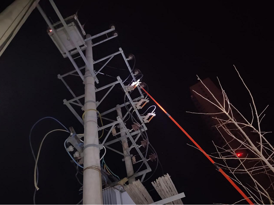 到達(dá)現(xiàn)場(chǎng)后,馬工邊聽(tīng)現(xiàn)場(chǎng)電工說(shuō)明情況,邊勘察現(xiàn)場(chǎng),對(duì)柱上變壓器的跌落保險(xiǎn)進(jìn)行檢查,確認(rèn)安裝位置。